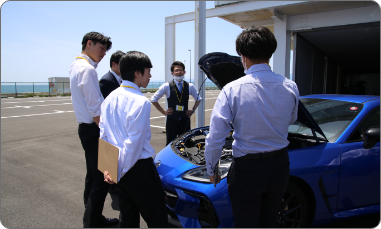 神奈川スバルでは自動車保険の販売を行っています。そのため保険の知識を共有する研修を実施しています。また、お客様がお車を乗りかえられる際に必要な査定のスキルを磨く研修も行っています。