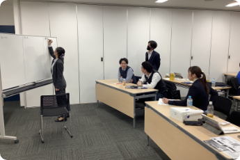 入社2年目、3年目対象のワークショップで最大年4回開催。参加者が店舗から持ち寄った課題を、参加者個々で考えを解決し、店舗に持ち帰り実践。自主性・主体性・課題発見力を育むためのトレーニングを行います。同じ課題に向かって進むことで同期同士の絆を深めることができます。